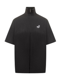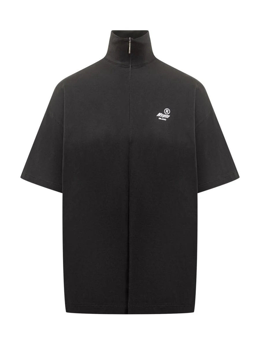 Black cotton Msgm T-shirt with high collar and zipper front. Oversized design with embroidered logo on chest, perfect for an urban and contemporary look. Gender: Women Material: 100% COTTON Color: Black Made in: Italy Product ID: 3942MDM71N257798 99 *Import tax/duty will be calculated at checkout (If applicable)