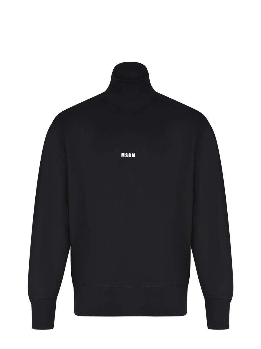 MSGM sweatshirt made of black cotton. High ribbed collar. Long sleeves. White contrast micro 'MSGM' logo print on the front. Ribbed cuffs and hem. Gender: Men Material: COTTON Color: Black Made in: Italy Product ID: 2000MM508300000-99 *Import tax/duty will be calculated at checkout (If applicable)