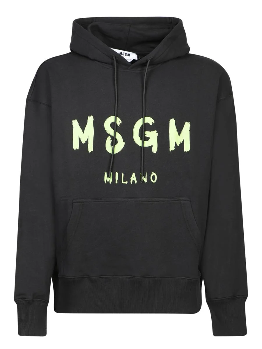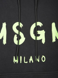 Black cotton hoodie. Bright green MSGM logo on the front. Kangaroo pocket. Explore urban style with the MSGM hoodie, featuring a bold green logo on a black base. The design includes a convenient kangaroo pocket, perfect for a dynamic everyday look. Gender: Men Material: 100% COTTON Color: Black Made in: Imported Product ID: 3740MM515 247799 99 *Import tax/duty will be calculated at checkout (If applicable)