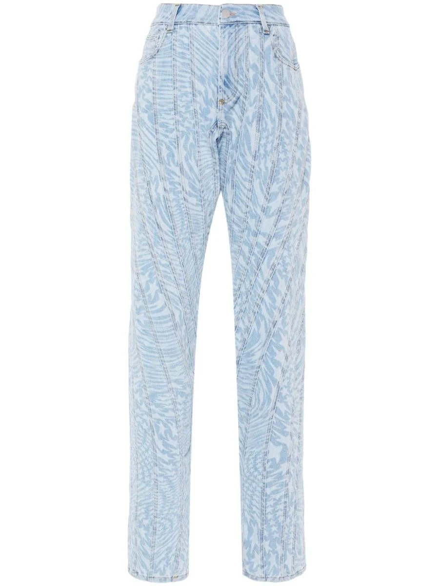 blue stretch-cotton denim star print mid-rise belt loops classic five pockets signature multi-seam spiral construction tapered leg logo-debossed patch to the rear concealed fly and button fastening Gender: Women Material: COTTON 72% ELASTANE 28% Color: PRINTED STAR Made in: IT Product ID: 24P6PA0327875 LMS *Import tax/duty will be calculated at checkout (If applicable)