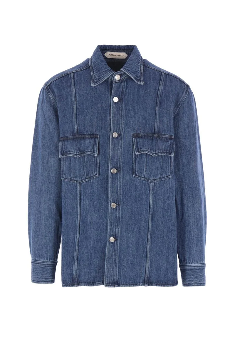 Shirt by Namacheko made of cotton and linen denim. Features a classic collar, metal button closure, flap pockets, long sleeves with buttoned cuffs, and a slightly rounded hem. Gender: Men Material: 100% COTTON Color: OCEAN BLUE Made in: Imported Product ID: NW25401N1350WA5300 *Import tax/duty will be calculated at checkout (If applicable)