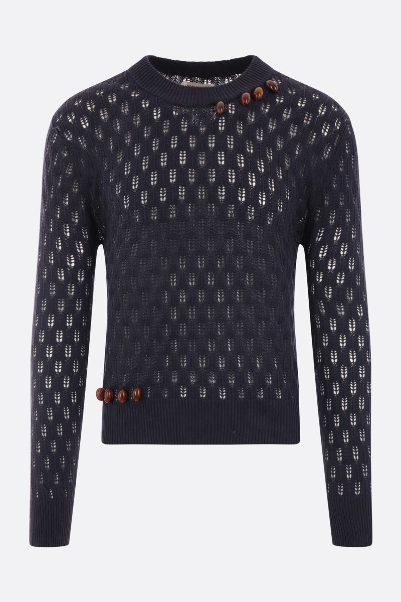 Namacheko's pullover crafted in blue organic cotton knit with gemstones at front. Featuring crew neck, long sleeves and ribbed edges. Gender: Men Material: 100% SEA ISLAND COTTON Color: BLUE Made in: MG Product ID: NS2479008007 *Import tax/duty will be calculated at checkout (If applicable)