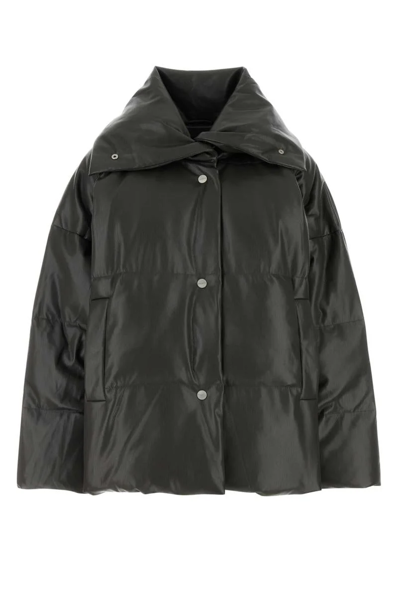 Charcoal synthetic leather down jacket Gender: Women Material: EXTERIOR: 100% POLYESTER LINING: 100% VISCOSE PADDING: 100% DOWN Color: GREY Made in: IMPORTED Product ID: NW24FWOW31669 MIDNIGHTGREEN *Import tax/duty will be calculated at checkout (If applicable)