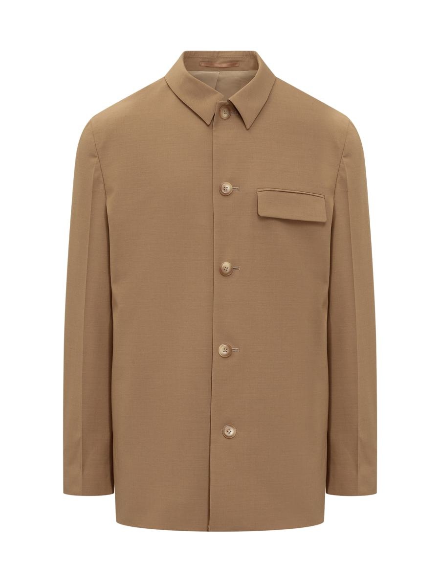 Jacket shirt with classic collar. Button front closure. Cuffs with buttons. Two side pockets and one chest pocket. Gender: Men Material: OUTSIDE: 53% POLYESTER RECYCLED PRE-CONSUMER 44% VIRGIN WOOL 3% ELASTANELINING: 100% VISCOSE Color: BROWN Made in: HU Product ID: NM22PFSH00774 CAMEL *Import tax/duty will be calculated at checkout (If applicable)