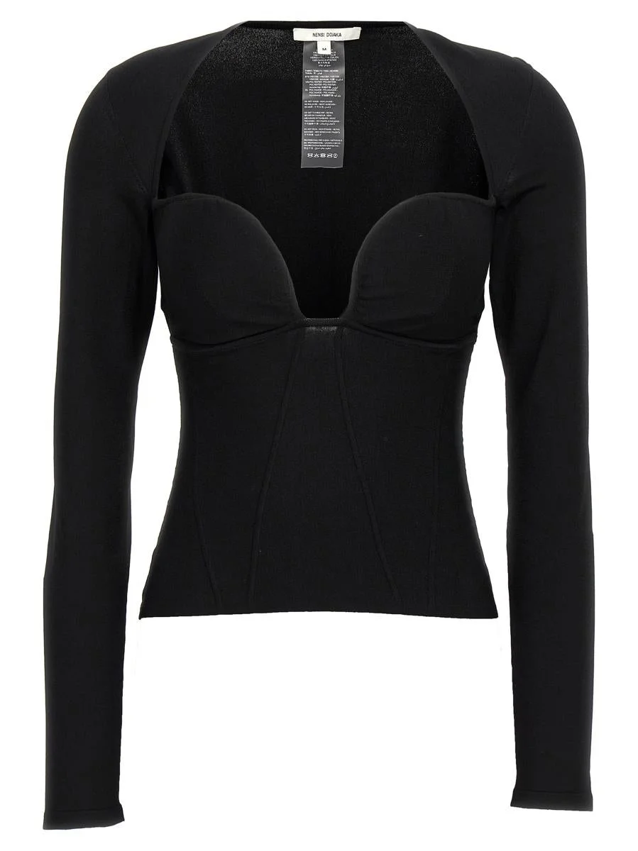 'Bustier' stretch knit top, padded cups, wide neckline, long sleeves Gender: Women Material: 81% VISCOSE 16% POLYESTER 3% POLYAMIDE Color: Black Made in: IT Product ID: NDAW24KT061BLACK *Import tax/duty will be calculated at checkout (If applicable)