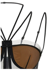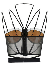Sheer Corset' corset tulle top with reinforcements, padded cups, back zip closure, multi thin adjustable straps, headband Elastic at the hem with hook closure Gender: Women Material: 100% POLYAMIDE Color: Black Made in: IT Product ID: NDSS25TOP093BLACKNUDE *Import tax/duty will be calculated at checkout (If applicable)