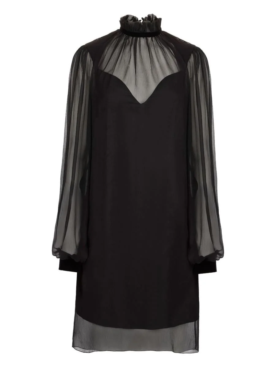 black high neck balloon sleeves Gender: Women Material: SILK 100% Color: Black Made in: Bulgaria Product ID: 25ACRO056SE1400 U9000 *Import tax/duty will be calculated at checkout (If applicable)