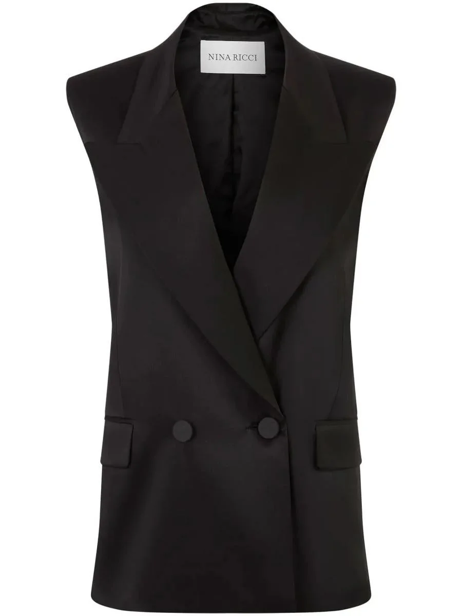 STRETCH SATIN DOUBLE BREASTED SLEEVELESS JACKET Gender: Women Color: U NOIR Made in: ROMANIA|RO Product ID: 25PCVE003VI0530_9000 *Import tax/duty will be calculated at checkout (If applicable)