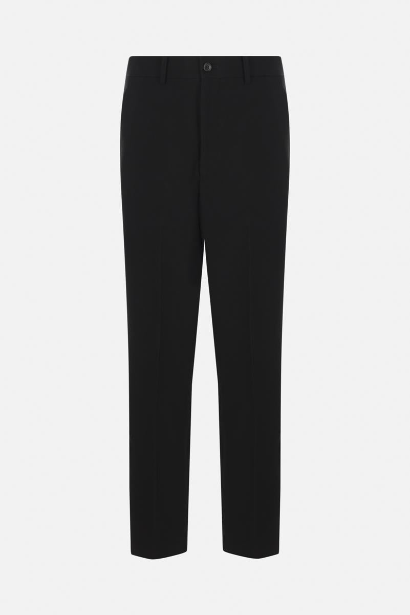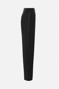 Noir Kei Ninomiya's tuxedo trousers crafted in black mohair wool with tonal satin bands along sides. Featuring button / zip closure, belt loops, multiple pockets, central pressed crease and partial lined interior. Gender: Women Material: WOOL 75% MOHAIR 25% ATTACH : SILK 50% WOOL 50% Color: Black Made in: JP Product ID: 3NP001W241BLACK *Import tax/duty will be calculated at checkout (If applicable)