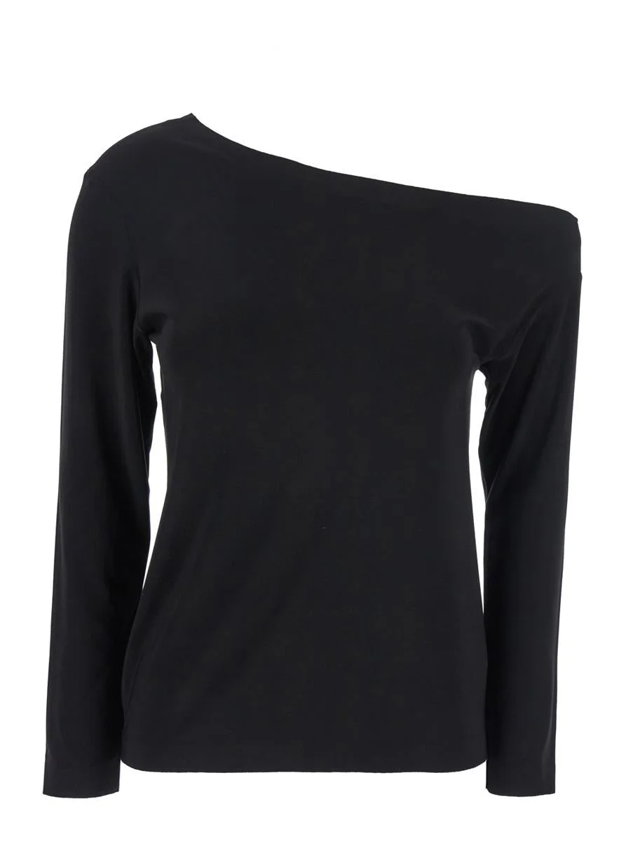 Top Black Off-shoulder Asymmetric neckline Long sleeves Straight hem Tech fabric stretch Fitted shape Gender: Women Color: Black Made in: Imported Product ID: KK3296PL343001 *Import tax/duty will be calculated at checkout (If applicable)