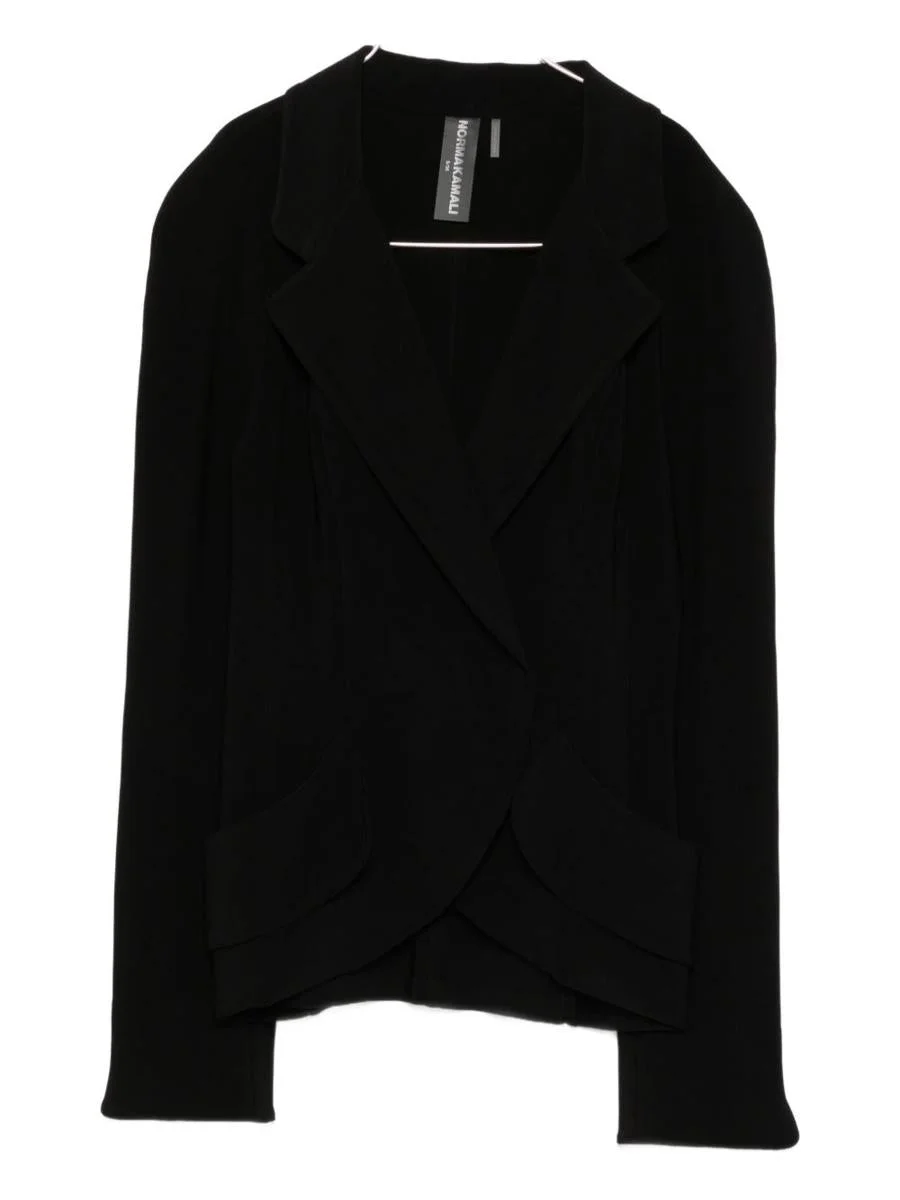 black notched lapels draped detail long sleeves curved hemline Gender: Women Color: Black Made in: Imported Product ID: KK3254PLQ87001 *Import tax/duty will be calculated at checkout (If applicable)
