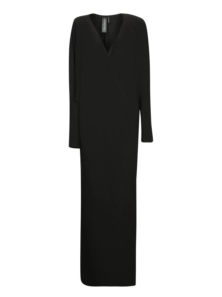V-neckline, three-quarter sleeves, wrap design, side slit. This elegant and versatile dress from Norma Kamali features a figure-flattering wrap silhouette, enhanced with a bold side slit for a touch of sensuality. Gender: Women Material: 95%POLYESTER 5%ELASTANE Color: Black Made in: Imported Product ID: KK3243 PLF85 001 *Import tax/duty will be calculated at checkout (If applicable)