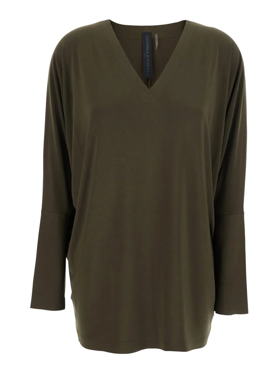 Norma Kamali Green Top With V Neck In Fabric Woman