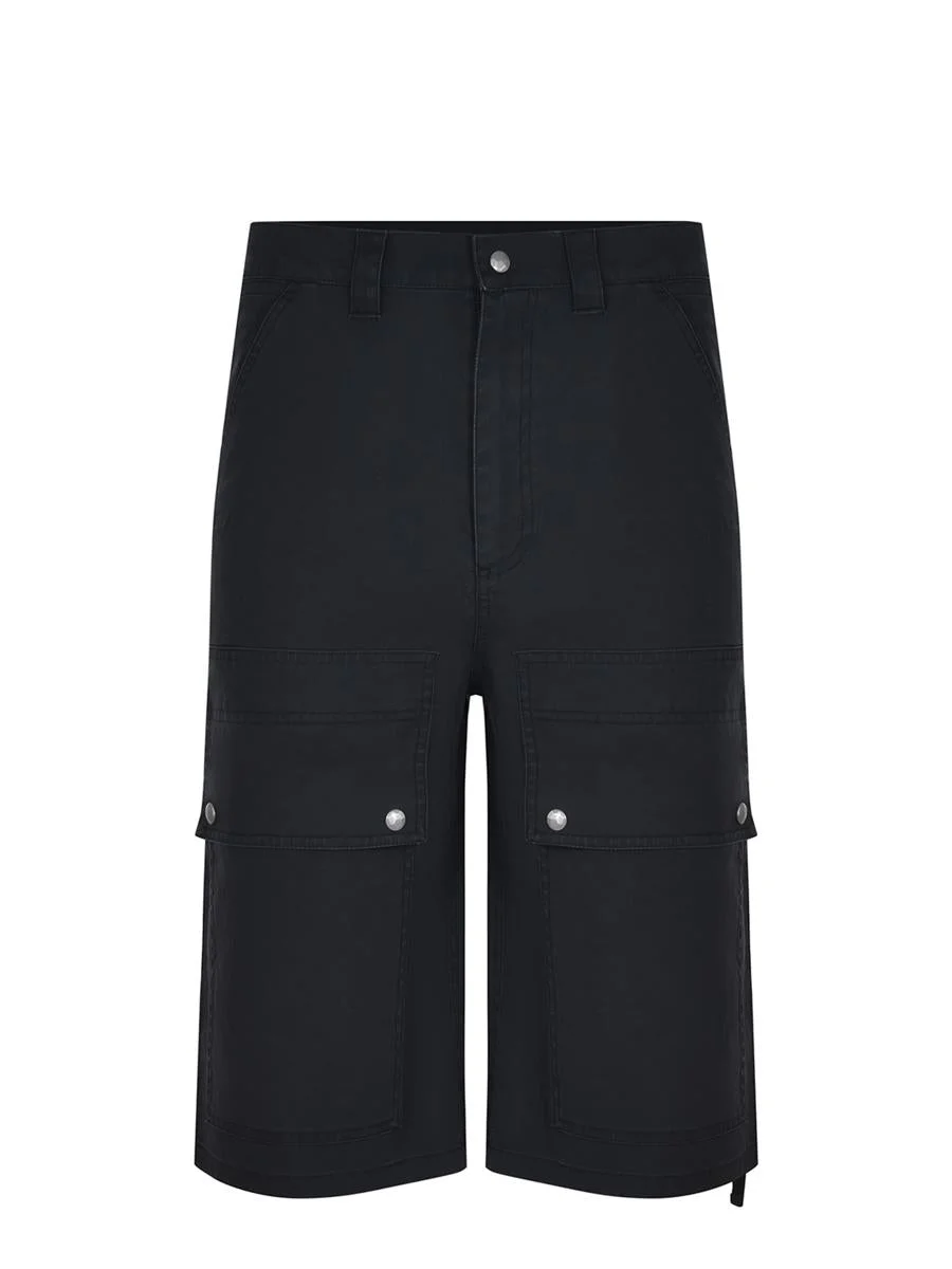 Bermuda Peacemaker Oamc made of black cotton. Closure with button and zip. Belt loops at waist. Side pockets. Cargo pockets with flap and buttons. Pockets on the back. Gender: Men Material: 100% COTTON Color: Black Made in: Imported Product ID: R05BCO002099 *Import tax/duty will be calculated at checkout (If applicable)