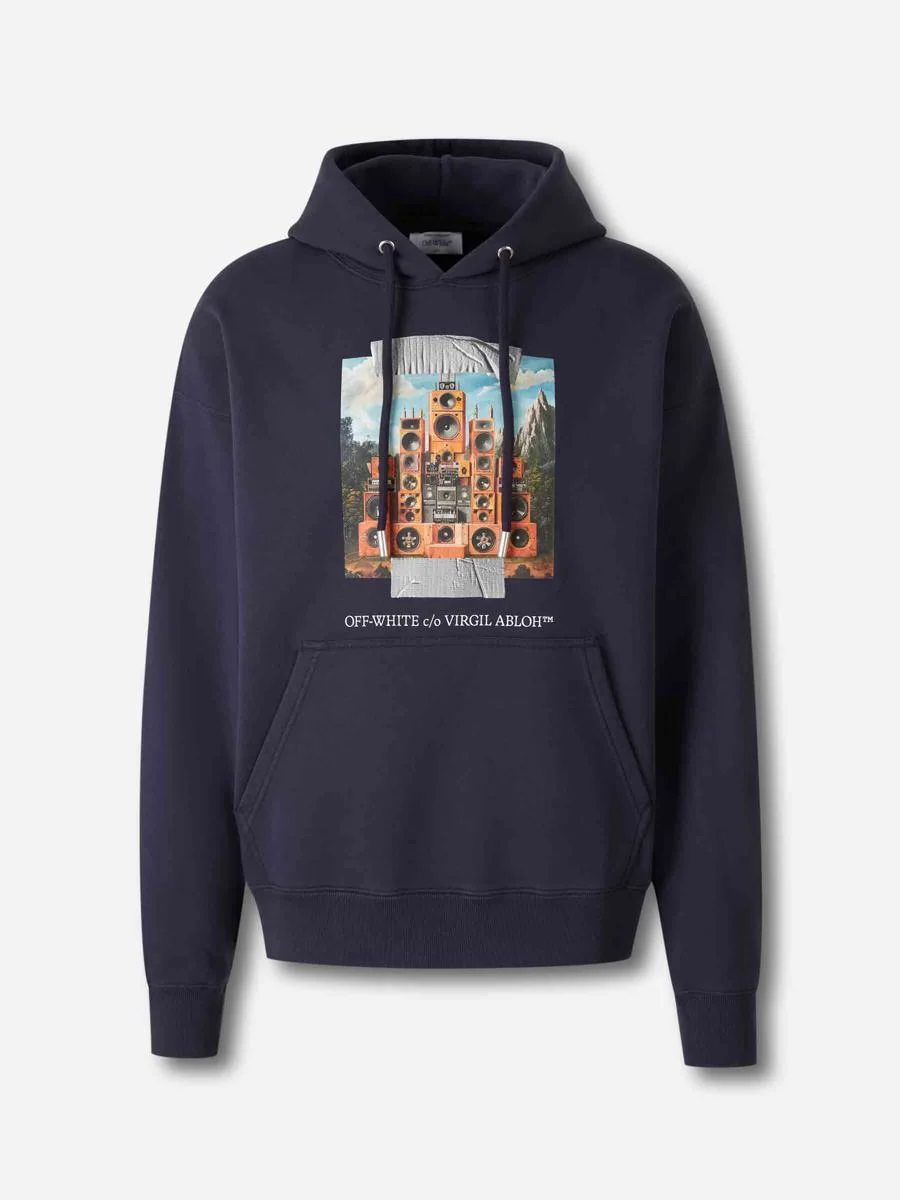 HoodieHoodie By Off-White• Ribbed finishes at the cuffs and hem• Front kangaroo pockets• Urban graphic design with logo on the front and back.• Loose fit• Features a distinctive graphic logo on the front, and another graphic with text on the back.• Made from high-quality cotton• Hoodie• No closure• With adjustable hood with drawstringsComposition: 100% cotton. Ribbed knit: 95% cotton, 5% elastane.Portugal Gender: Men Material: 100% COTTON. RIBBED KNIT Color: NAVY BLUE Made in: Portugal Product ID: MBB085F5F0074901_402DARK SAPPHIRE-W *Import tax/duty will be calculated at checkout (If applicable)