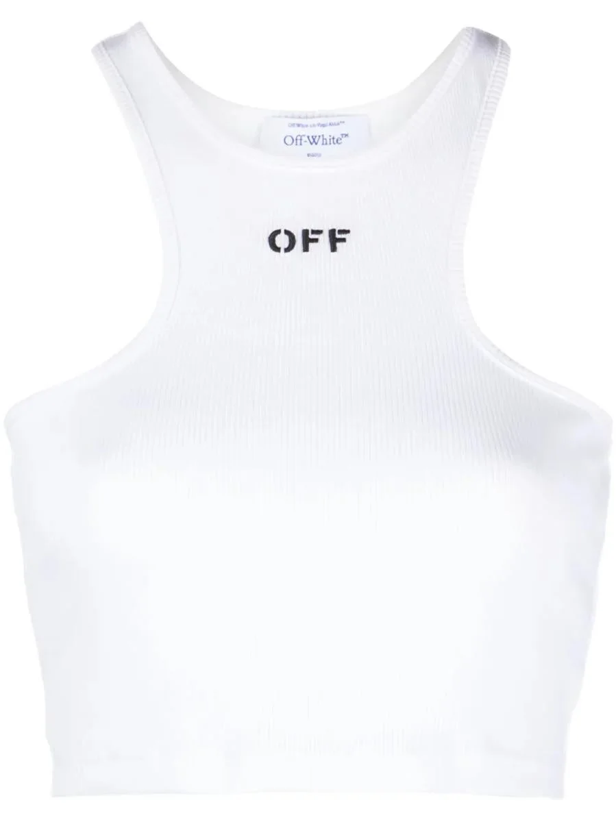 Off-Stamp Crop Top White, ribbed design, logo print on the front, sleeveless, racerback, straight hem, and cropped design. Origin: Italy Washing Instructions Machine wash ID: OWAD086C99JER0020110 Gender: Women Material: COTTON Color: WHITE Made in: Italy Product ID: 88310 OWAD086C99JER0020110 93231 *Import tax/duty will be calculated at checkout (If applicable)
