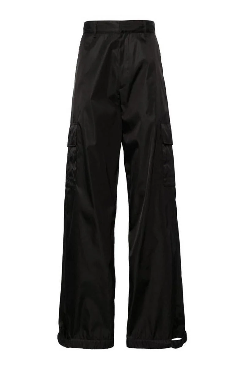 black coated finish embroidered logo to the side belt loops concealed front button, hook and zip fastening drop crotch two diagonal pockets to the sides two side cargo pockets two rear welt pockets strap press-stud fastening ankles wide leg cotton lining authenticity QR code Gender: Men Material: 6% POLYURETHANE 94% POLYAMIDE NYLON LINING 100% COTTON Color: BLACK Made in: IT Product ID: OMCF037C99FAB0031010 *Import tax/duty will be calculated at checkout (If applicable)