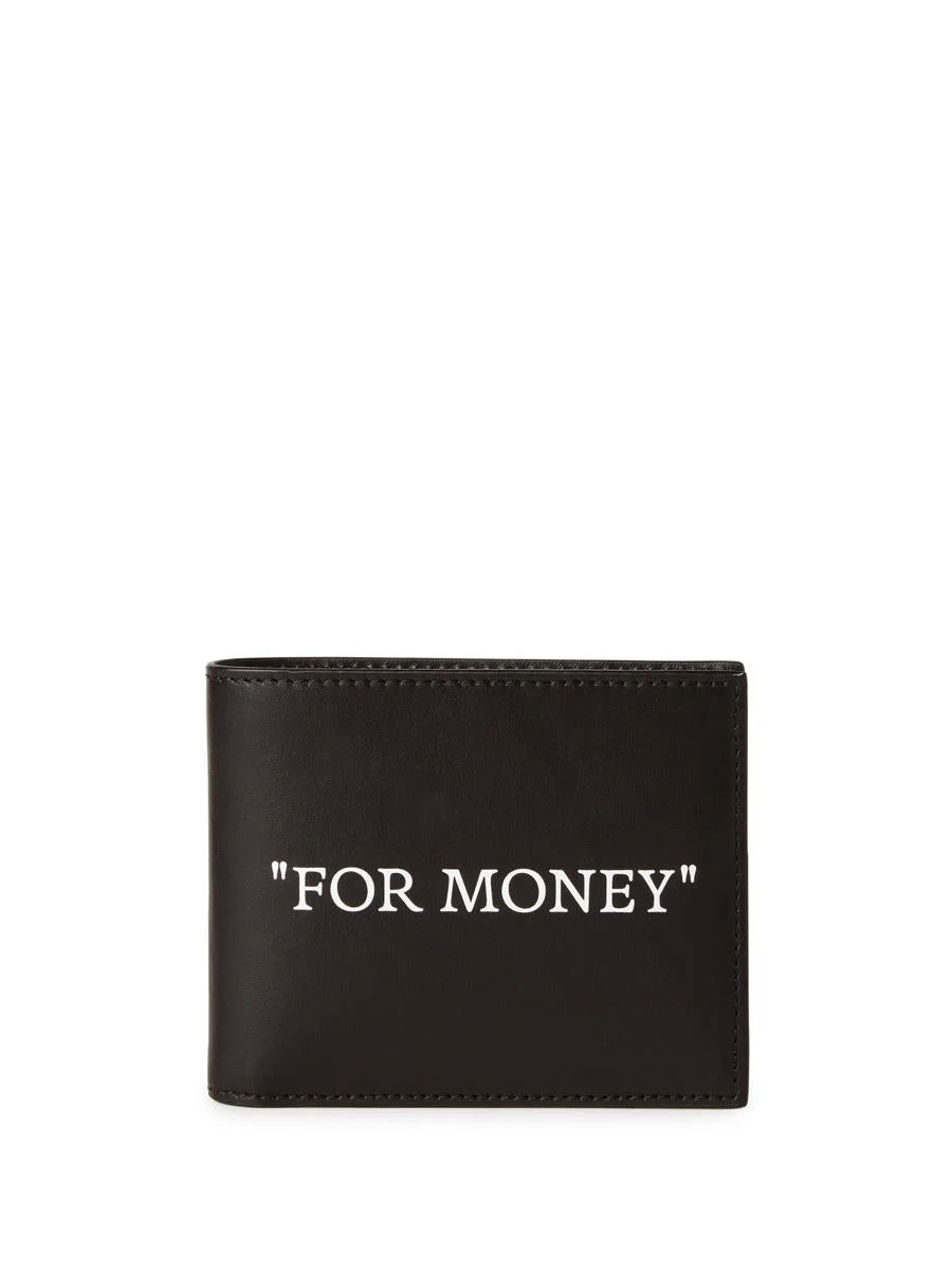 Quotation marks can be recognised as a signature feature that has been used consistently throughout the collections from Off-White. This black bi-fold wallet displays this motif in the form of a white 'For Money' print both on the outside and inside. Made in Italy Highlights black/white calf leather bi-fold design signature quote motif text print internal logo stamp internal card slots internal note compartments authenticity QR code Gender: MEN Color: Black Made in: Imported Product ID: OMNC074C99LEA001 1001 BLACK WHITE *Import tax/duty will be calculated at checkout (If applicable)