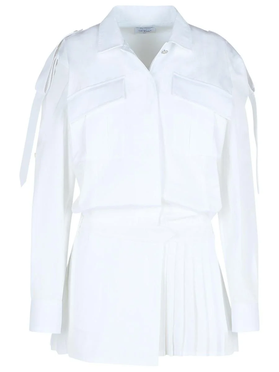 Pointed collar, central closure with concealed flap buttons, two front pockets, belt loops, tone-on-tone inserts, pleated skirt, one back pocket Gender: Women Material: 100% COTTON Color: WHITE Made in: IT Product ID: OWDG00AS25FAB0010110 *Import tax/duty will be calculated at checkout (If applicable)