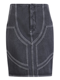 Off-White rivisita in chiave grafica la classica gonna in denim per la SS23. Ã caratterizzata da cuciture a contrasto che evidenziano l'orlo curvo Regular waist. Concelead front fastening. Contrast stitching. Curved hem. Color: black Material: 100% Cotton Made in Italy Gender: WOMEN Material: 100% COTTON Color: BLACK Made in: IT Product ID: OWYF020S23 DEN002 1000 *Import tax/duty will be calculated at checkout (If applicable)