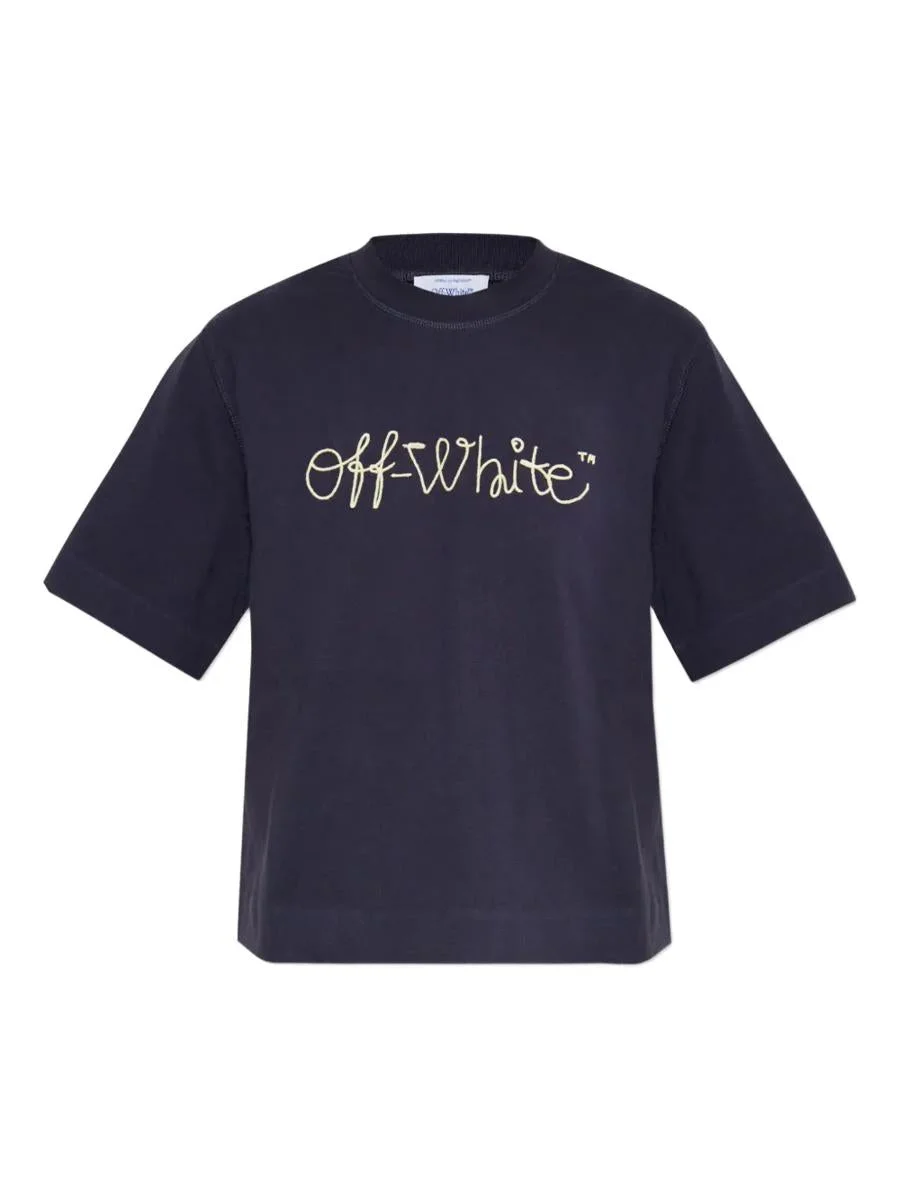 T-shirt with embroidered logo Navy blue cotton, embroidered logo, round neck, short sleeves, straight hem Washing instructions Read manufacturer`s instructions ID OWAA090F25JER0034C19 Gender: Women Material: COTTON Color: BLUE Made in: Portugal Product ID: 94186 OWAA090F25JER0034C19 93221 *Import tax/duty will be calculated at checkout (If applicable)