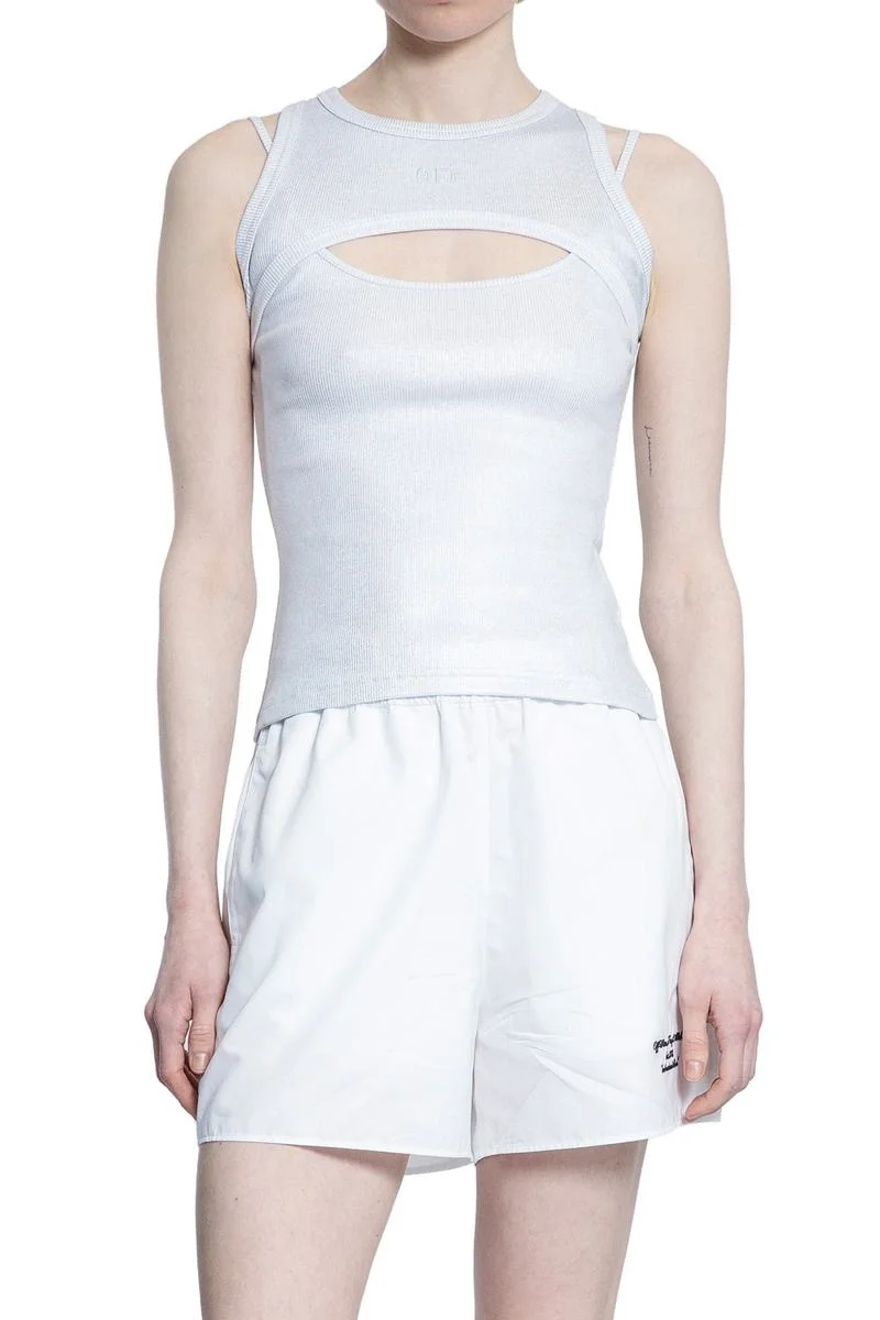 OFF COATED RIB CUT OUT TOP SILVER - WHIT Gender: Women Material: 98% COTTON 2% ELASTANE Color: SILVER Made in: IT Product ID: OWAD237S25JER0017201 *Import tax/duty will be calculated at checkout (If applicable)