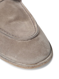 Quartz grey suede loafer. Rounded toe. Non-slip rubber sole. Precise finishes and an elegant silhouette define the Solitude Suede Quarzo Loafer, perfect for adding a touch of class to everyday attire. Gender: Men Material: 100% CALF LEATHER Color: Beige Made in: Imported Product ID: SOLITUDE01 LCACH QUAR *Import tax/duty will be calculated at checkout (If applicable)