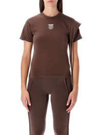 The Ottolinger fitted T-shirt combines minimal urban design with experimental detailing. Made from organic cotton, it features a slim silhouette with short sleeves and a classic crew neckline. A contrasting logo print at the chest highlights the brand’s identity, while the asymmetric shoulder detail adds a bold, contemporary twist. A versatile piece that merges comfort with modern edge. Slim fitted cut Classic crew neckline Short sleeves Printed Ottolinger logo at chest Asymmetric shoulder detail Alessandra is 1,75 m and wears size S Gender: Women Material: 100% ORGANIC COTTON Color: Brown Made in: Greece Product ID: 25A11510191505#BRW *Import tax/duty will be calculated at checkout (If applicable)
