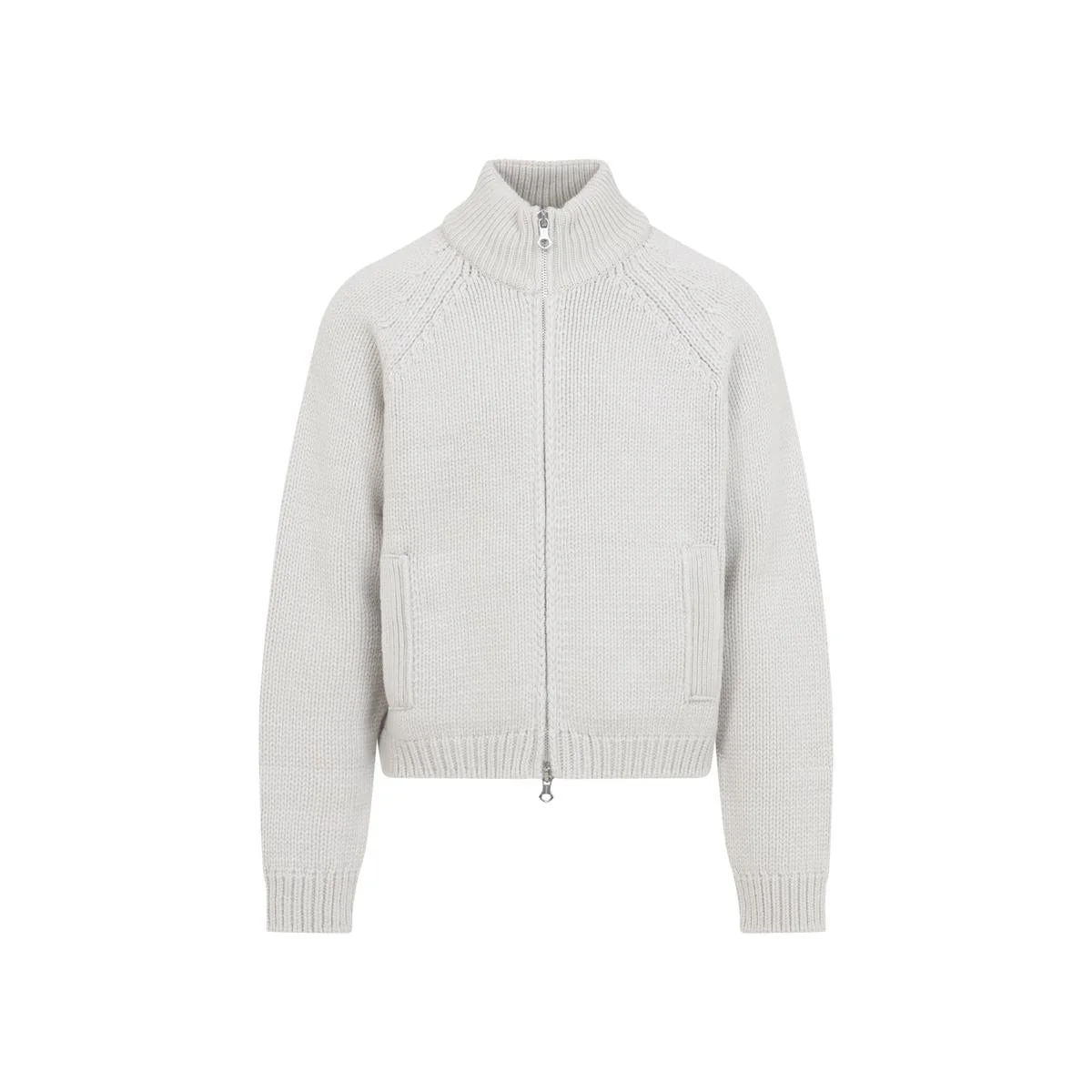 Our Legacy Bone White Extrafine Merino Wool Ultra Zip Cardigan. Pure bone white extrafine merino wool cardigan, stand-up collar, front zipped fastening, side pockets, long sleeves, ribbed cuffs and hem, straight hem, knitted design. Gender: Men Material: 100%EXTRAFINE MERINO WOOL Color: Beige Made in: Portugal Product ID: M4253UB_ *Import tax/duty will be calculated at checkout (If applicable)