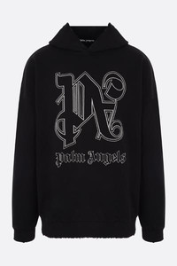 Palm Angels' hoodie crafted in black cotton jersey with PA Monogram logo embroidery at chest and logo loop at left side. Featuring hood without drawstring, long sleeves and ribbed edges. Gender: MEN Material: DETAIL 100% POLYESTER - EMBROIDERY 100% POLYESTER - FABRIC 100% COTTON - RIB DETAIL 3% ELASTANE 97% COTTON Color: BLACK Made in: IT Product ID: PMBB126E23FLE0011003 *Import tax/duty will be calculated at checkout (If applicable)