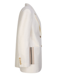 Single-breasted wool-blend blazer with embroidered inserts by Palm Angels Notched lapels. Long sleeves. Chest flap pocket. Two front flap pockets. Front button fastening. Embroidered inserts. Color: light beige Material: 55% Polyester, 45% Wool Gender: Women Material: 55% POLYESTER, 45% WOOL Color: BEIGE Made in: Imported Product ID: PWEN028S23 FAB002 0403 *Import tax/duty will be calculated at checkout (If applicable)