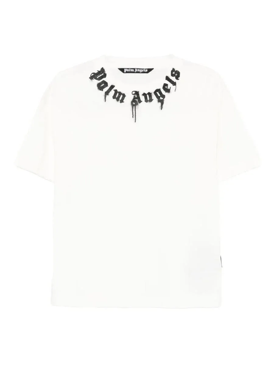 Palm Angels Neck Logo Reg Tee Off White - Black