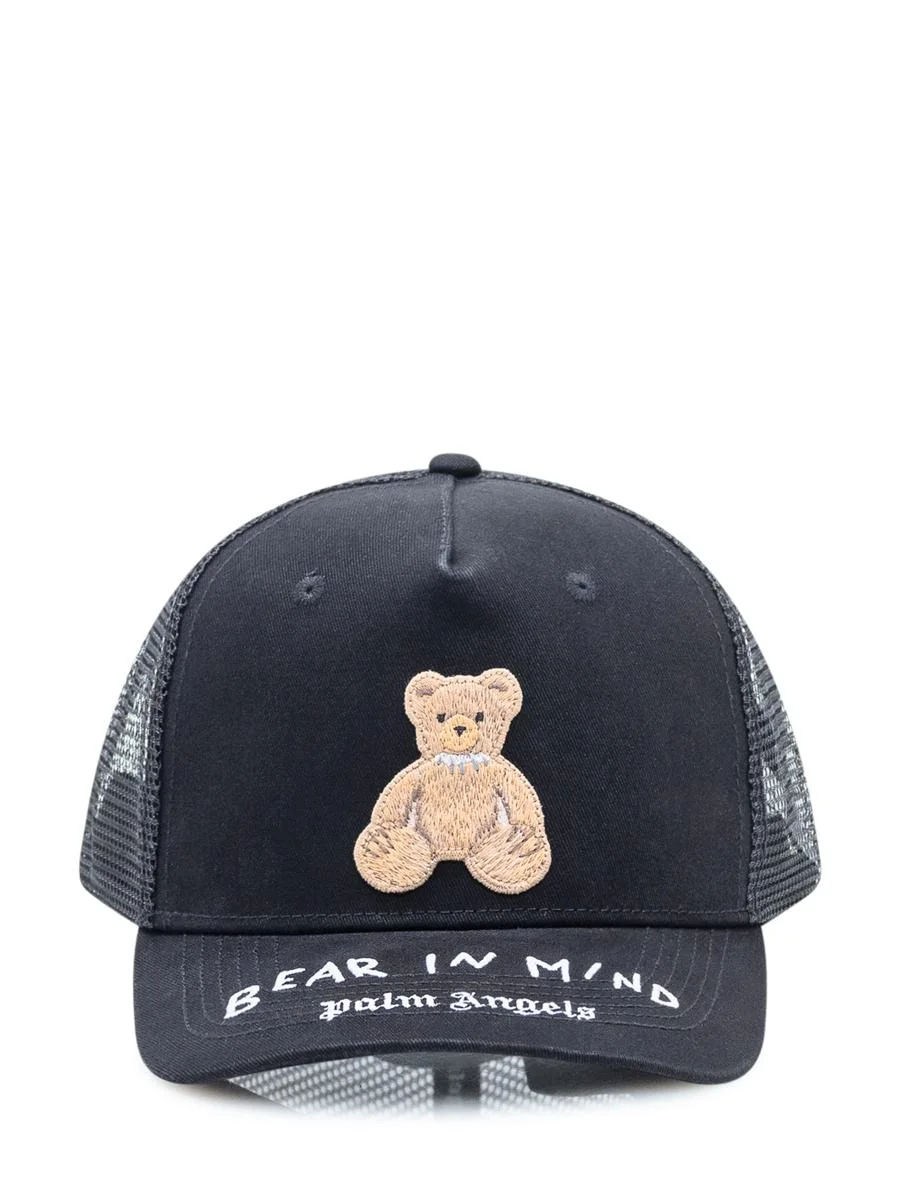 Black Palm Angels cap with mesh back and bear embroidery on front. Bear In Mind inscription detail on the visor and embroidered logo. Gender: Men Material: OUTSIDE: 100% COTTON, 100% POLYESTERLINING: 100% COTTON Color: Black Made in: Imported Product ID: PMLB068F25FAB001 1060 *Import tax/duty will be calculated at checkout (If applicable)