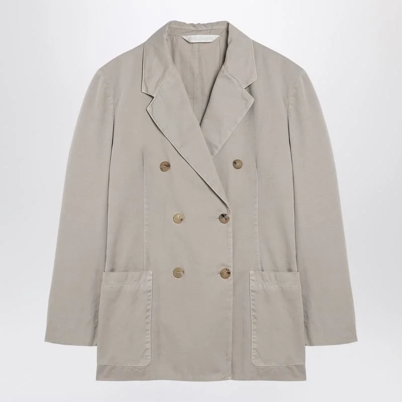 Beige cotton double-breasted jacket from Palm Angels featuring a front button placket, classic lapels, two patch pockets on the front, long sleeves with buttoned cuffs and logo patch on the back. Gender: Women Material: Fabric I: 100% Cotton / Lining: 100% Cupro Color: Beige Made in: IT Product ID: PWEN044F24FAB001/P_PALMA-6161 *Import tax/duty will be calculated at checkout (If applicable)