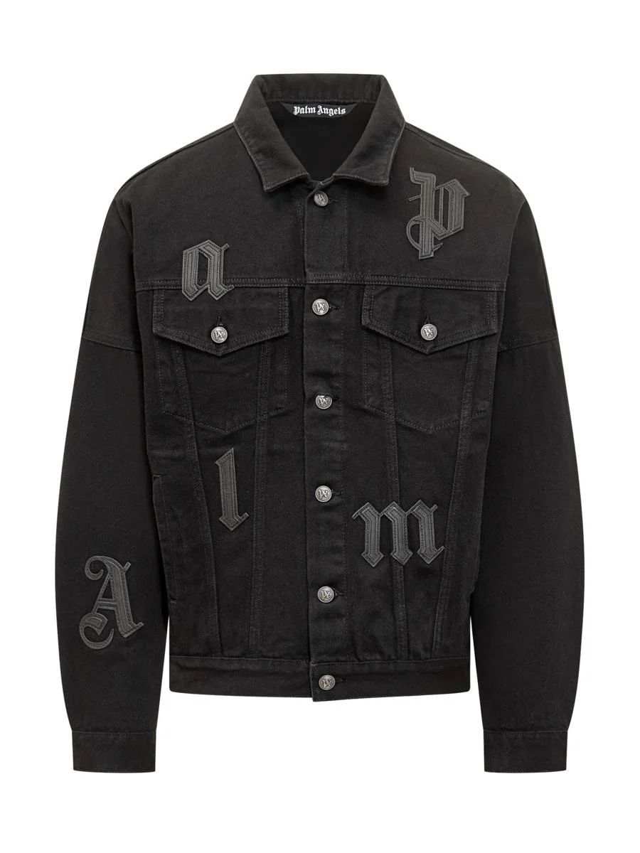 Black denim Palm Angels jacket with tone-on-tone gothic embroidery making up the brand's logo. Metal button closure and front pockets. Gender: Men Material: OUTSIDE: 100% COTTONLINING: 65% POLYESTER, 35% COTTON Color: Black Made in: Imported Product ID: PMYE006F25DEN001 1010 *Import tax/duty will be calculated at checkout (If applicable)