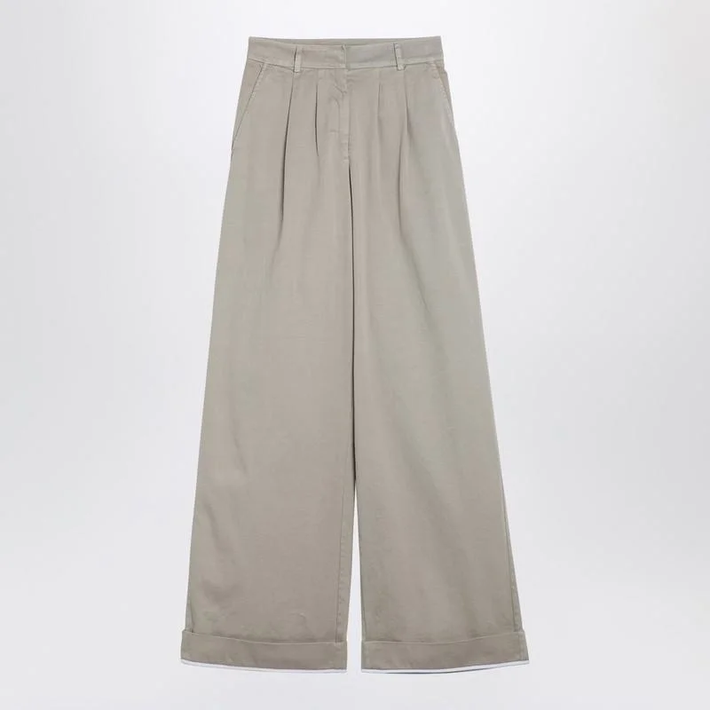 Beige cotton wide leg trousers from Palm Angels featuring a front zip and hook fastening, belt loops, two side welt pockets, two back flap pockets and logo patch on the back. Gender: Women Material: 100% Cotton Color: Beige Made in: IT Product ID: PWCA143F24FAB001/P_PALMA-6161 *Import tax/duty will be calculated at checkout (If applicable)