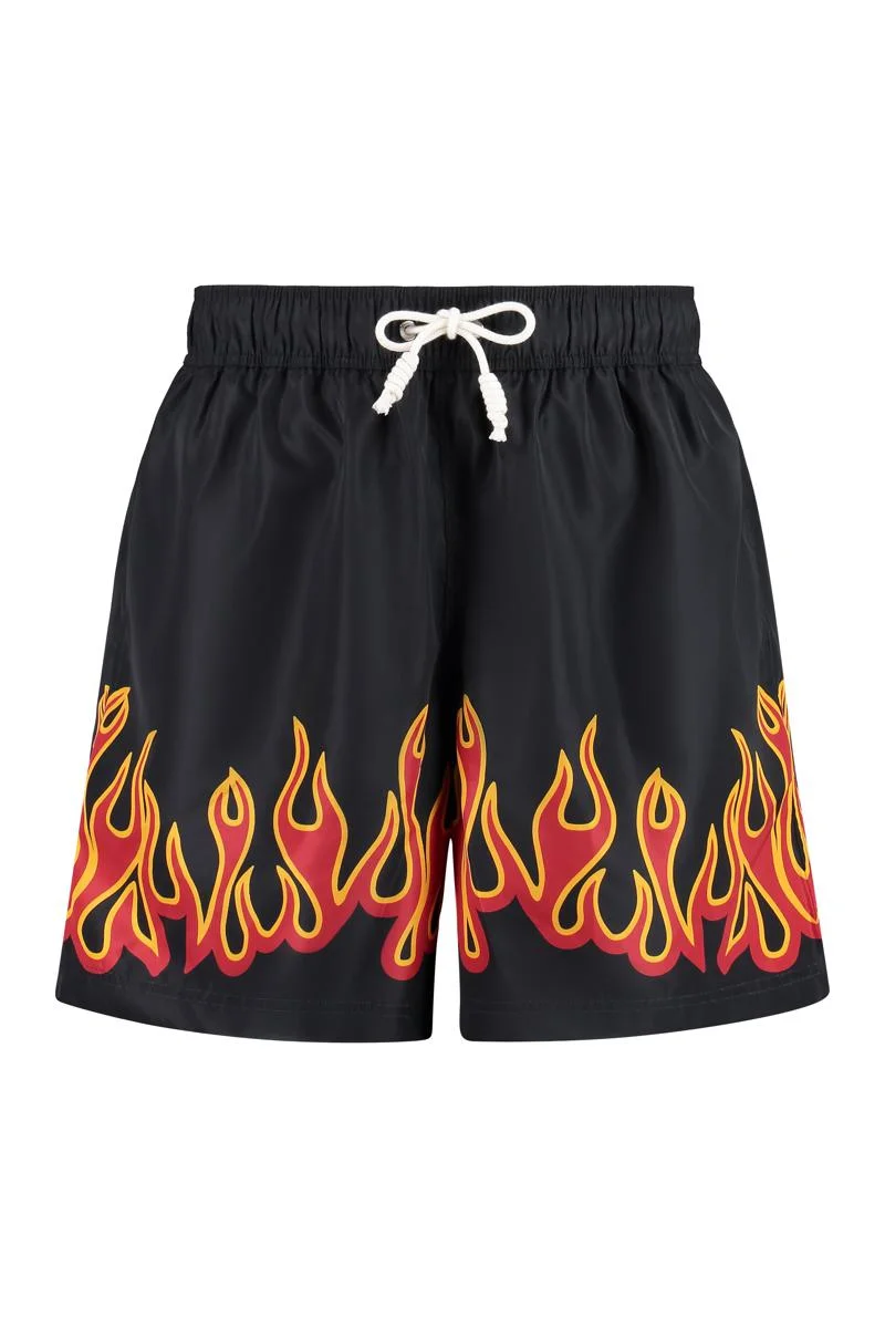 Printed swim shorts Contrasting color print Side pockets Flap pocket on the back Mesh lining 100% Polyester Gender: Men Material: POLYESTER Color: Black Made in: Italy Product ID: PMFA011F22FAB001_1025 *Import tax/duty will be calculated at checkout (If applicable)