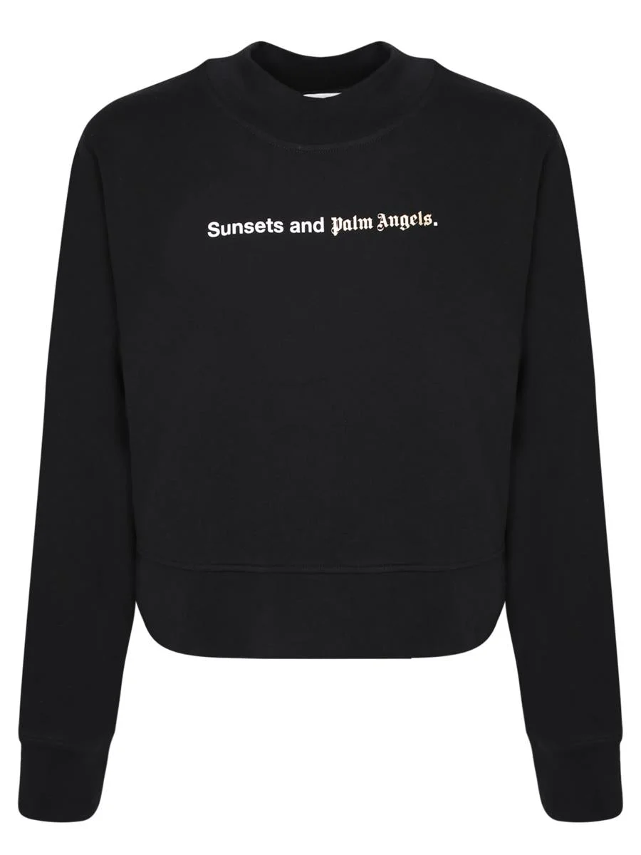 Cotton round-neck swetashirt by Palm Angels Roundneck. Long sleeves. Logo print to the front. Contrasting logo. Ribbed details. Tonal stitching. Regular fit. Straight hem. Color: black Material: 100% Cotton Gender: Women Material: 100% COTTON Color: BLACK Made in: Imported Product ID: PWBA016F23 FLE001 1001 *Import tax/duty will be calculated at checkout (If applicable)