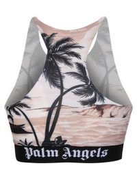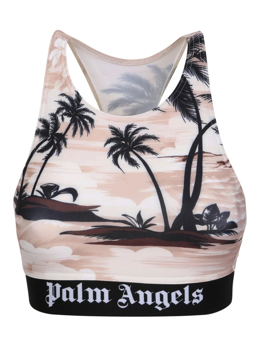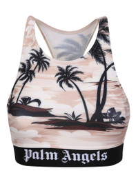 Stretchy sports top design with palm print and Palm Angels logo Round neck. Sleeveless. All-over palm print. Logo print on the elastic band. Cropped. Color: beige Material: 56% Polyamide, 22% Elastane, 22% Polyester Gender: Women Material: 56% POLYAMIDE, 22% ELASTANE, 22% POLYESTER Color: BEIGE Made in: Imported Product ID: PWVO024S23 FAB002 6110 *Import tax/duty will be calculated at checkout (If applicable)