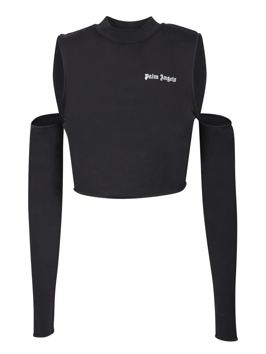 Cotton top by Palm Angels Roundneck. Embroidered logo to the chest. Contrasting logo. Cut-out details. Long sleeves. Contrasting stitching. Cropped design. Raw cut. Color: black Material: 99% Cotton 1% Elastane Gender: Women Material: 99% COTTON 1% ELASTANE Color: BLACK Made in: Imported Product ID: PWAB029F23 FAB001 1003 *Import tax/duty will be calculated at checkout (If applicable)
