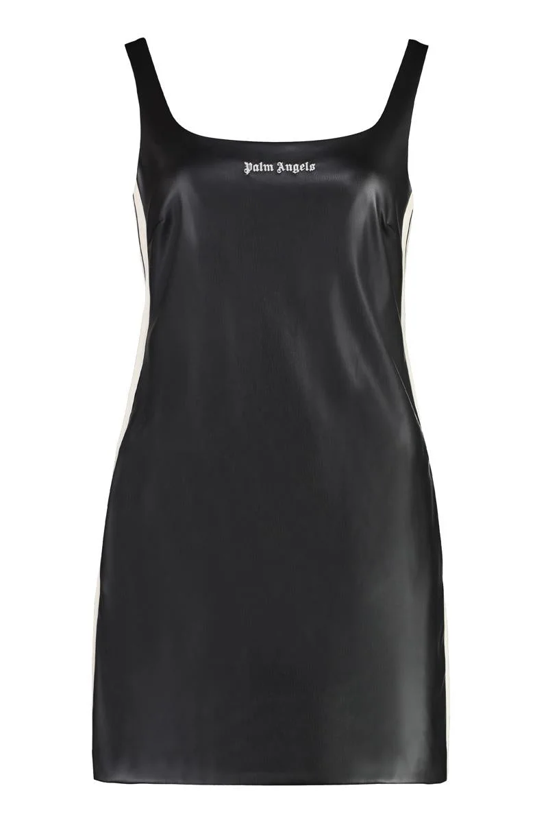 Vegan leather dress Contrasting color side stripes 100% Polyester, 68% Polyester, 32% Polyurethane Gender: Women Material: POLYESTER Color: Black Made in: IT Product ID: PWDB243F24FAB001_1003 *Import tax/duty will be calculated at checkout (If applicable)