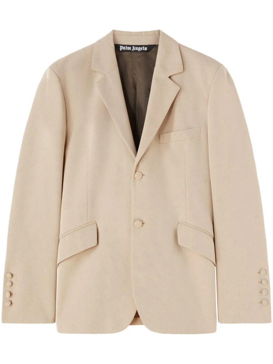 Fitted Retro single-breasted blazer from PALM ANGELS featuring beige, cotton blend, tailored design, notched lapels, front button fastening, two side flap pockets, long sleeves, buttoned cuffs, logo patch to the rear and central rear vent. This piece fits true to size. We recommend you get your regular size Model is 1,84m / 6ft 1in wearing size 48 (IT) Gender: Men Material: OUTER: COTTON 70%, POLYESTER 30% LINING: VISCOSE 100% Color: BEIGE Made in: IT Product ID: PMEN034F23FAB0016110 *Import tax/duty will be calculated at checkout (If applicable)