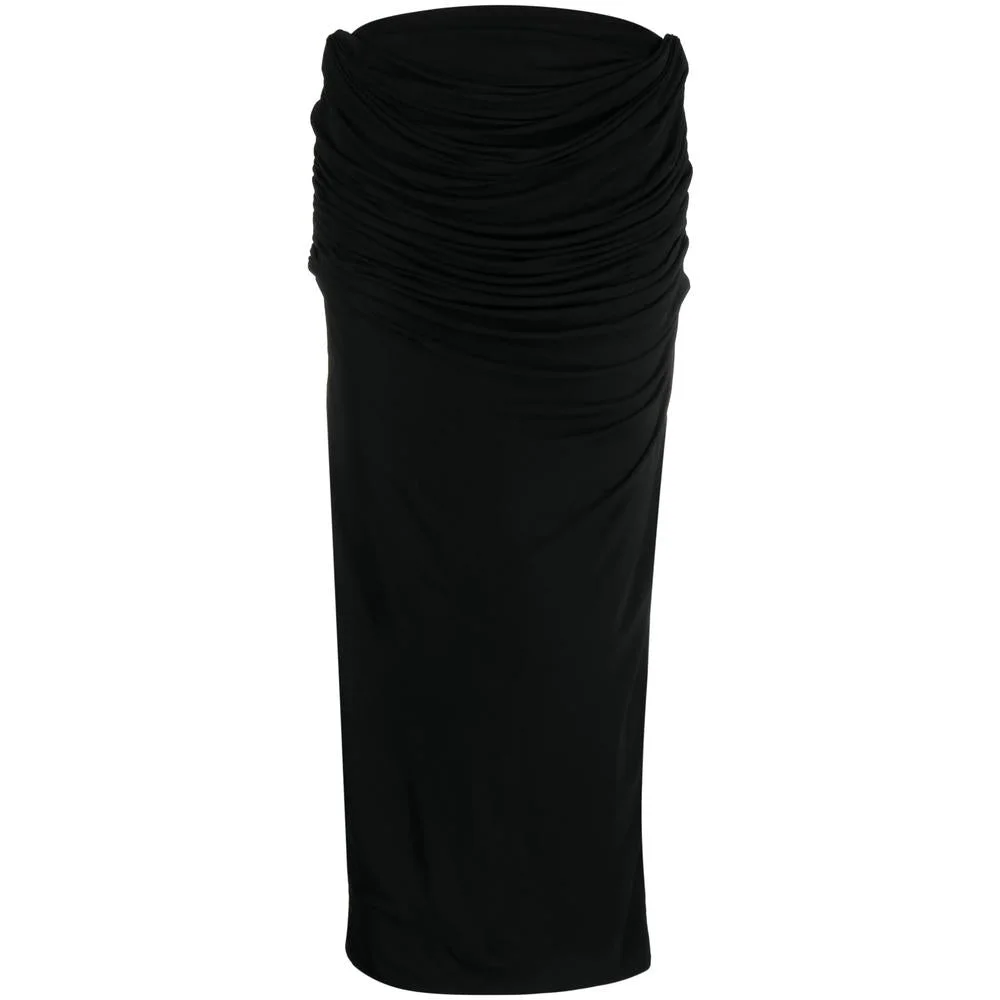 Black draped detailing high waist central rear vent mid-length we've partnered with good on you — an independent agency that rates how brands perform in relation to their impact on the planet, people and animals, with a multi-criteria rating simplified to a five points scale. in order to be awarded our conscious label, larger brands need to score a minimum of four out of five ('good'), while smaller brands must score at least three out of five ('it's a start'). this item comes from a brand rated three out of five ('it's a start') by good on you. please note, this is a brand-level rating and does not guarantee that this product is made with conscious materials. learn more about what makes a product conscious on our conscious criteria page Gender: Women Material: VISCOSE: 100.0% Color: BLACK Made in: IMPORTED Product ID: PG450 BLACK *Import tax/duty will be calculated at checkout (If applicable)