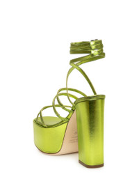 Green metallic platform sandal. Rectangular heel. Ankle strap. Braided on the front. Heel height: 13 Platform height: 5 Gender: WOMEN Material: OUTSIDE: 100% LEATHER LINING: 100% LEATHER SOLE: 100% LEATHER Color: GREEN Made in: IT Product ID: PX974XLTM3 ACID *Import tax/duty will be calculated at checkout (If applicable)