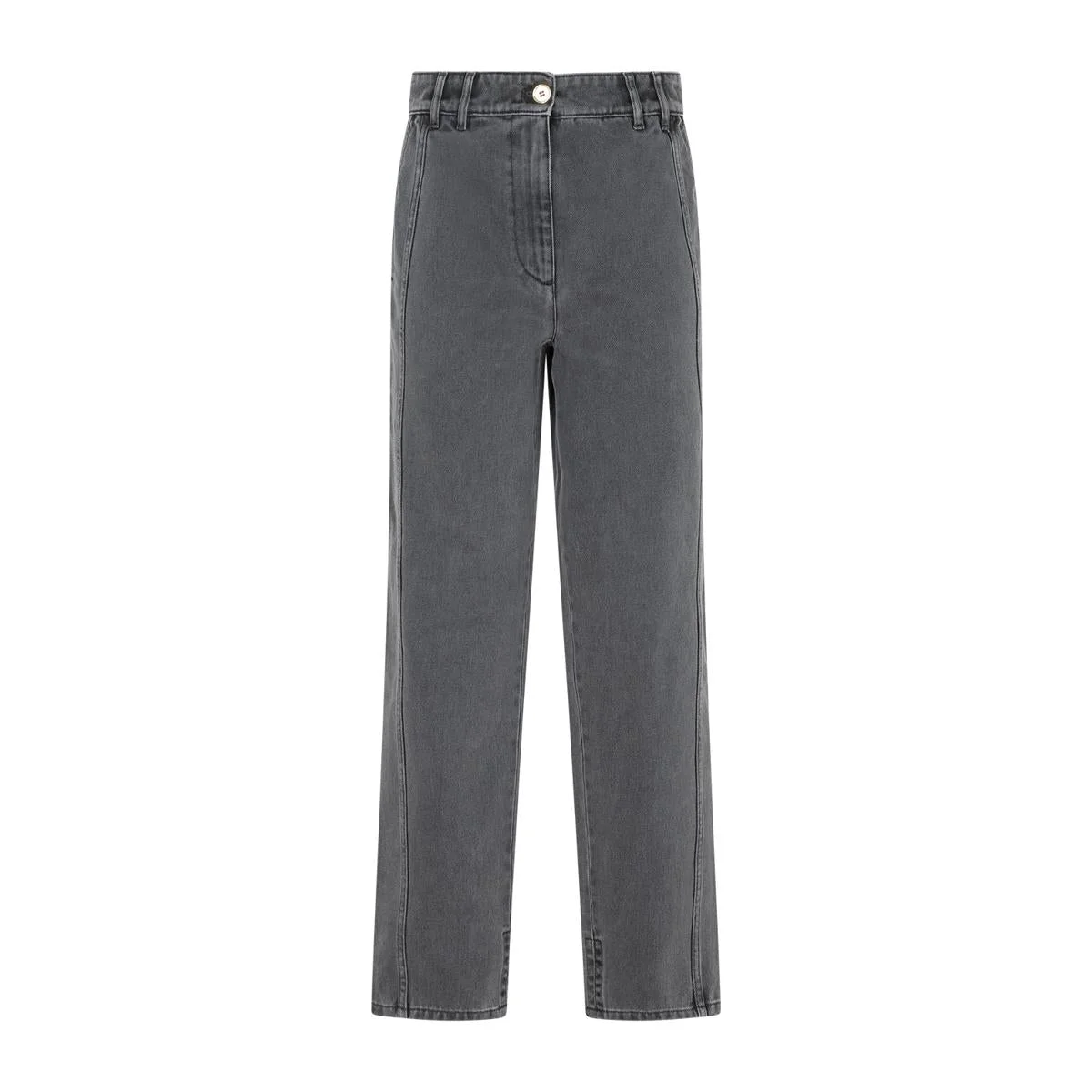Patou Cargo Anthracite Cotton Trousers. Pure anthracite cotton denim, zip and button closure, belt loops, back embroidered logo, patch pocket on the back, stitching details embellishment, straight hem. Gender: Women Material: 100%COTTON Color: GREY Made in: TN Product ID: TR0320081_959 *Import tax/duty will be calculated at checkout (If applicable)