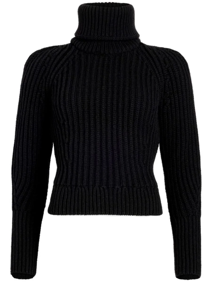 black wool ribbed knit roll neck long sleeves ribbed edge straight hem Gender: Women Material: WOOL 90% CASHMERE 10% Color: Black Made in: PT Product ID: KN206 8064 999B *Import tax/duty will be calculated at checkout (If applicable)