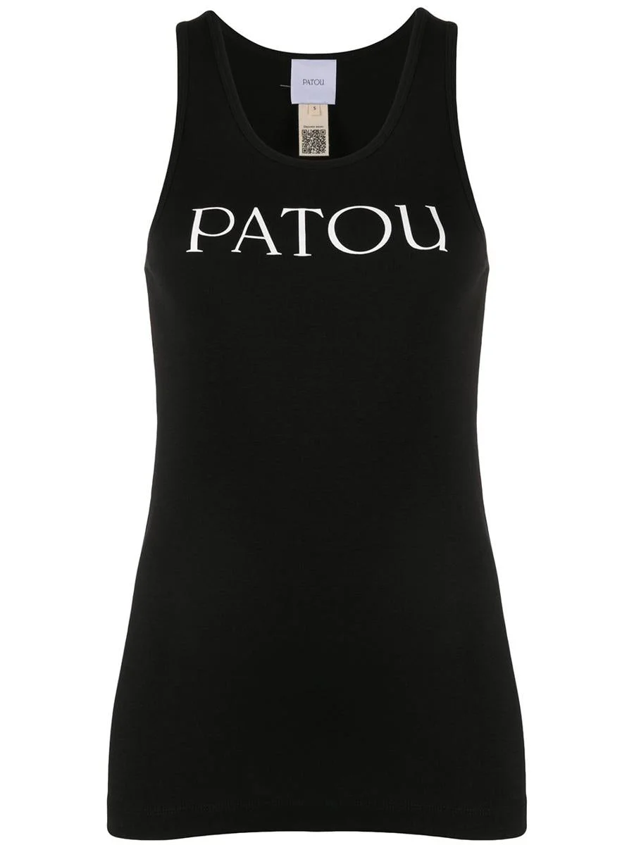 Black cotton scoop neck logo tank top from Patou featuring a scoop neck, a sleeveless design, a stretch fit, a central printed logo and a finished hem. Gender: Women Material: COTTON 100 % Color: BLACK Made in: PT Product ID: JE015 9994 999B *Import tax/duty will be calculated at checkout (If applicable)