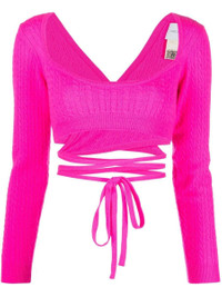 cropped tie-fastening top from Patou featuring fuchsia pink, wool-cashmere blend, knitted construction, cropped, long sleeves, self-tie fastening and V-back. Gender: Women Material: WOOL 90% CASHMERE 10% Color: PINK Made in: IT Product ID: KN122 8041 453B *Import tax/duty will be calculated at checkout (If applicable)