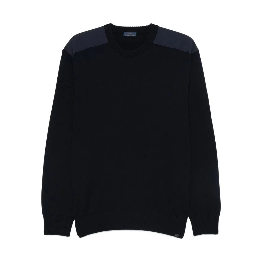 Dark blue wool crew neck long sleeves shoulder patches ribbed cuffs Gender: Men Material: VIRGIN WOOL: 100.0% Color: BLUE Made in: Hungary Product ID: 99311020 050 *Import tax/duty will be calculated at checkout (If applicable)