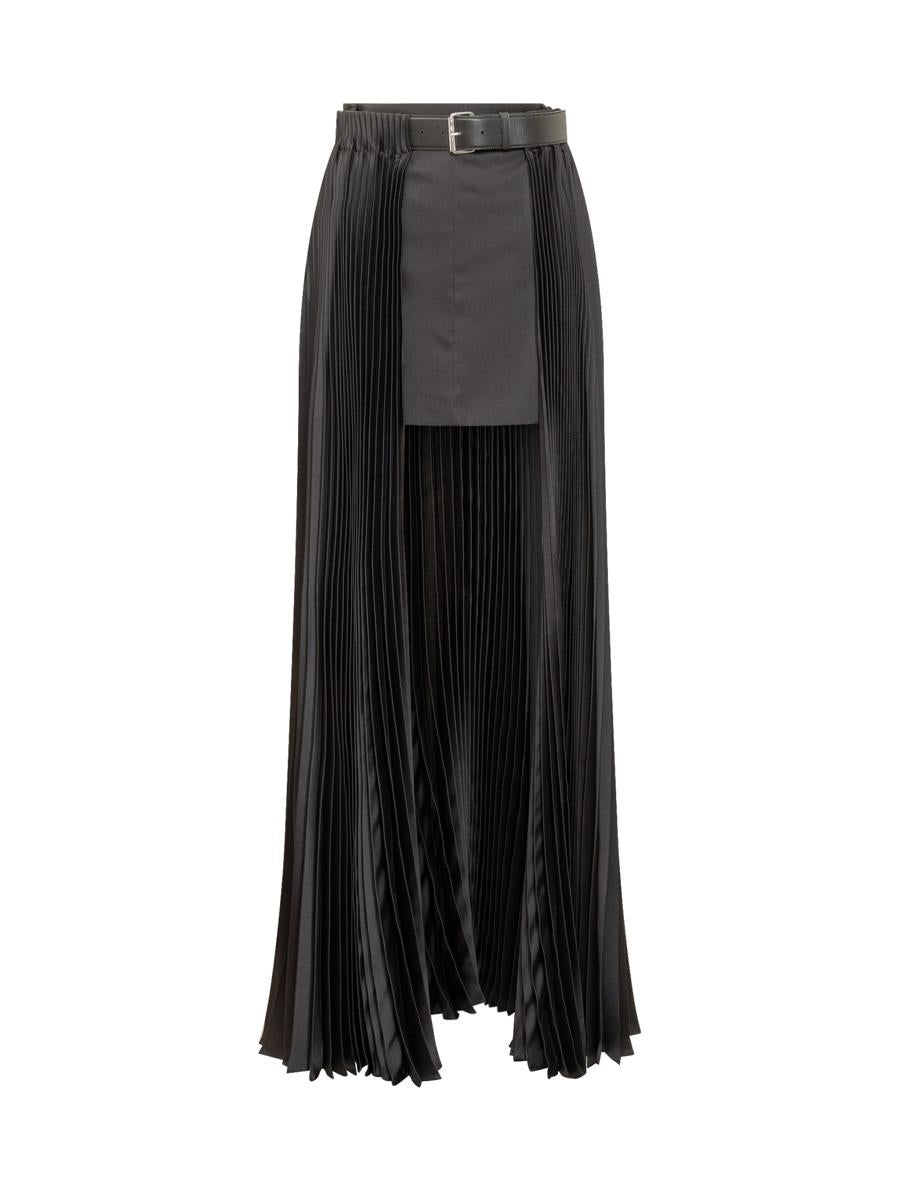 Black long skirt. Zipper and belt closure. Inner mini skirt. Outer pleated long skirt. Gender: Women Material: OUTSIDE: 100% POLYESTER - 100% LEATHER Color: BLACK Made in: IT Product ID: PDSS23271APL018LE024 BLACK *Import tax/duty will be calculated at checkout (If applicable)